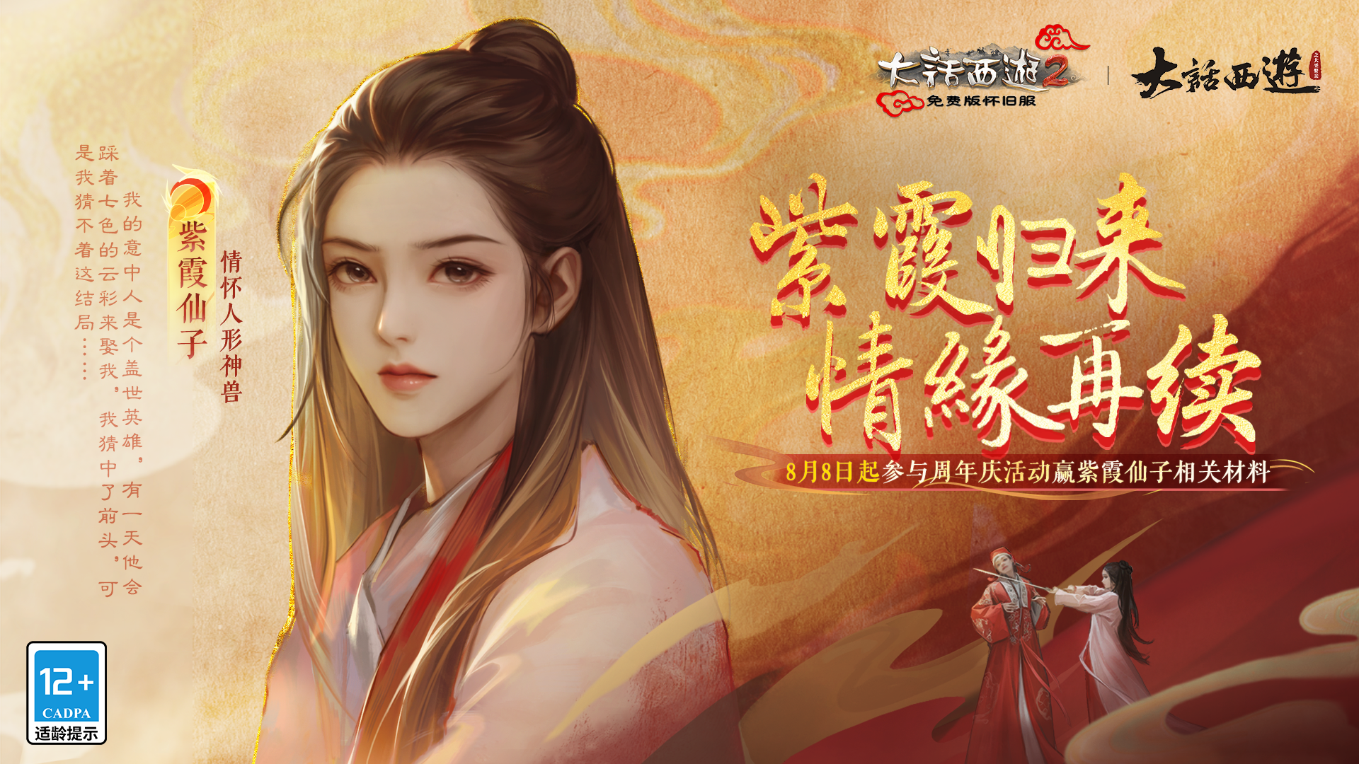 五百年前的水牢中,她指尖轻触至尊宝心口时眼底的星光;魔王寨混战中,她推开所爱之人以身挡戟的决然;心上人怀中,那句消散在风中的“我猜不中这结局”……这些画面是否仍让你刻骨铭心?值此《大话西游2免费版》怀旧服1周年庆之际,紫霞仙子这个为爱焚尽一切的痴女子,将跨越荧幕来到大话世界,成为你并肩而战的伙伴!