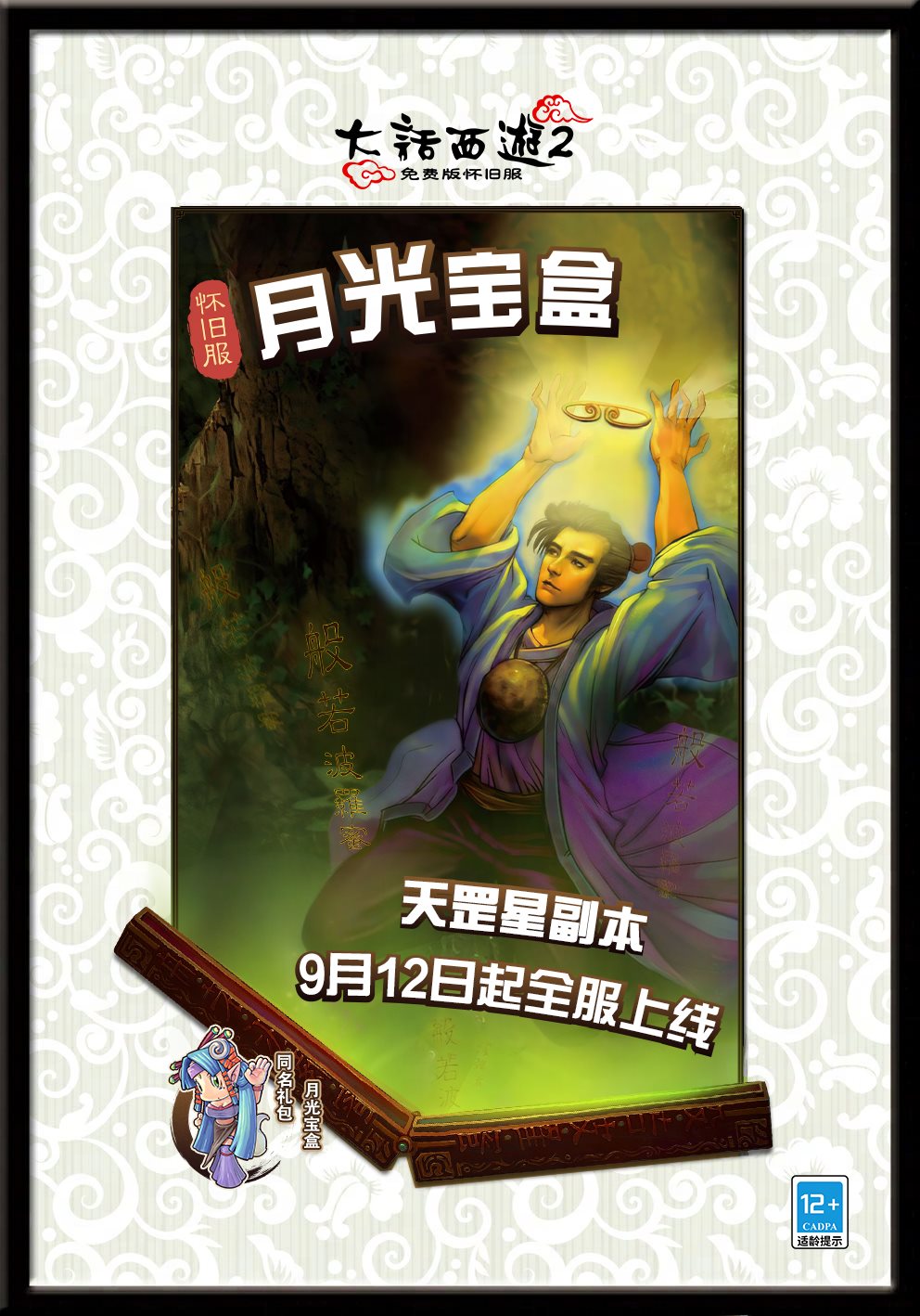 9月12日(明日),天罡星挑战副本将在开服时间达到90天后的服务器外放,而法宝系统调整内容将在今日维护后外放,祝少侠武运昌隆,再铸神通!闯荡江湖的同时,少侠也别忘了输入礼包码“月光宝盒”激活“月光宝盒序列号”礼包,领取白薇雪莲丸等好礼!今日中午12:00,【月光宝盒】新服重磅开启,参与新服活动还可赢茅台酒具礼盒等好礼!