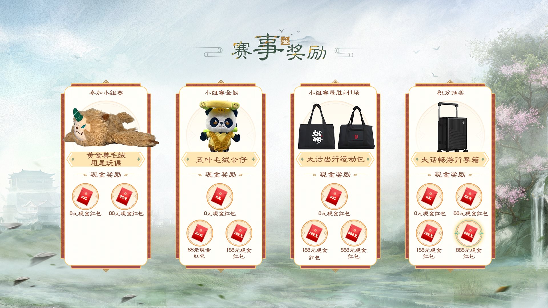 同时,全民参与小组赛并达成对应目标后,即可瓜分全民现金奖池,总额度超10万元,更有海量周边道具好礼等你来拿!