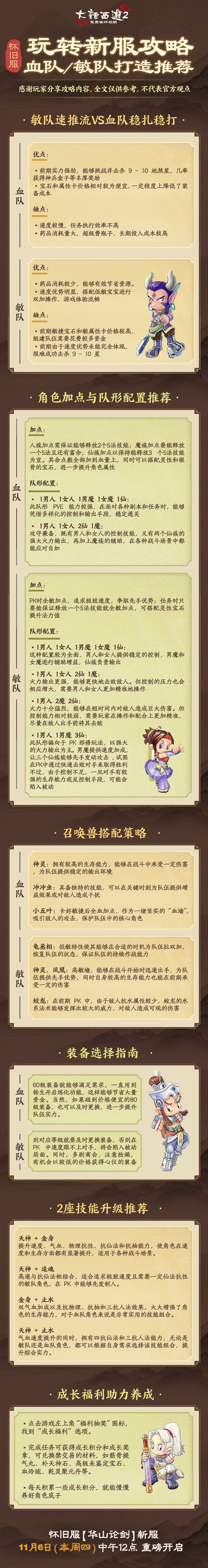 怀旧服【华山论剑】新服将于明日(11月6日)中午12:00开启,不仅有“宝库寻兽”活动限时返场,几率得海量银两,开启三界行纪宝箱还有机会获得凝魂珠(五常)、随机神兵礼盒、进化寻宝令自选宝箱等好礼!更有新服专属猴精、剑精灵进化材料等你来拿!