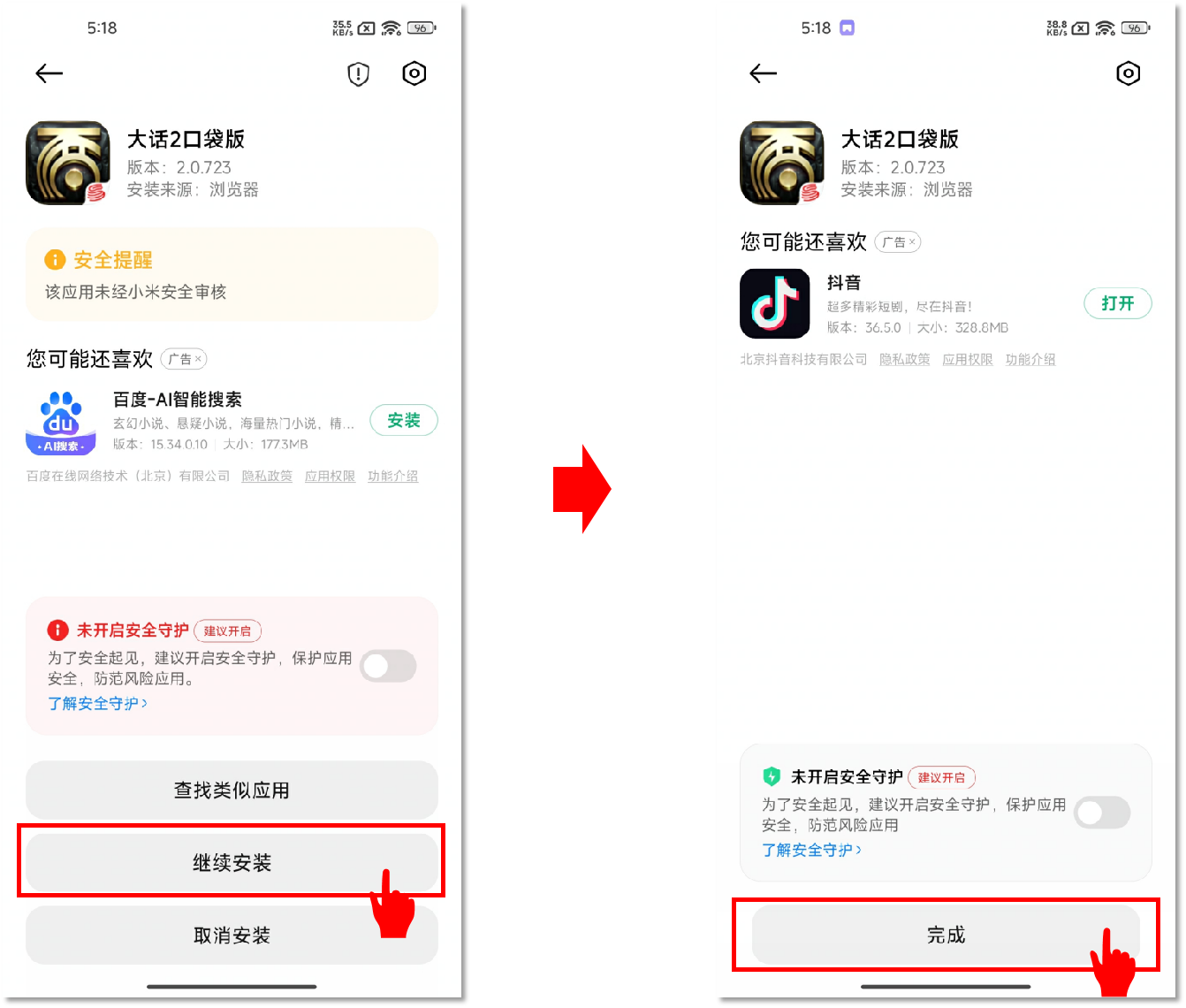 2、安装过程中,若出现如下图所示拦截,点击【继续安装】即可完成官方安全稳定包体的下载。