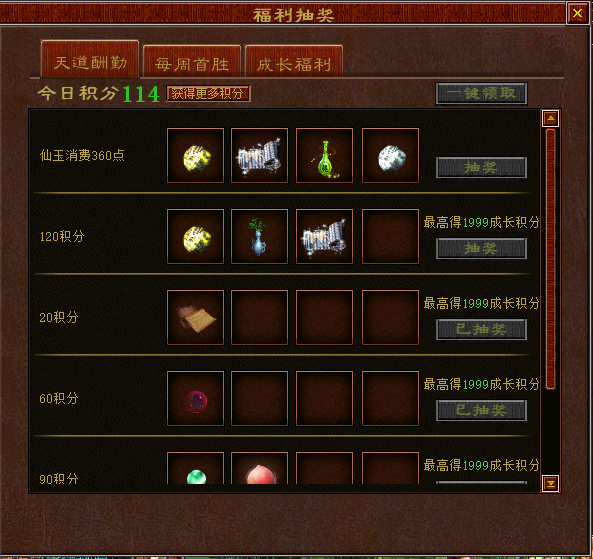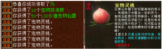 ·天道酬勤积分:玩家每天天道酬勤积分达到90分,即可领取1个“宠物灵桃”。