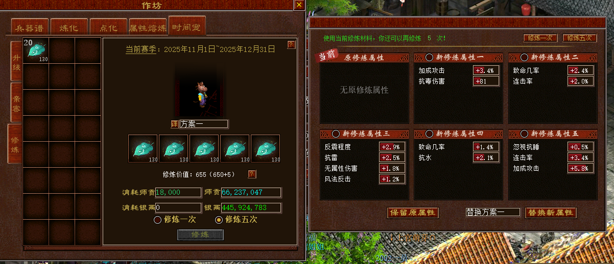 ·修炼属性生效比例调整:赛季不符的修炼属性的生效比例会随时间逐渐下降。这就要求玩家在新赛季及时调整修炼策略,以保持角色的属性优势。