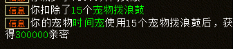 获取“宠物拨浪鼓”的方式同样与天道酬勤积分挂钩。每获得30积分,玩家就可以在时间宠界面领取5个“宠物拨浪鼓”,如消费仙玉50、360都可获得30积分。