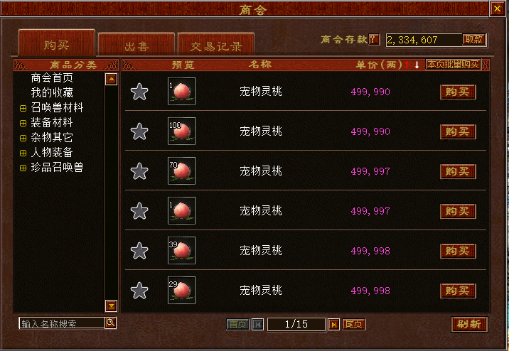 ·商会:在2002服务器商会中,目前一个“宠物灵桃”的售价大约为50万银两。