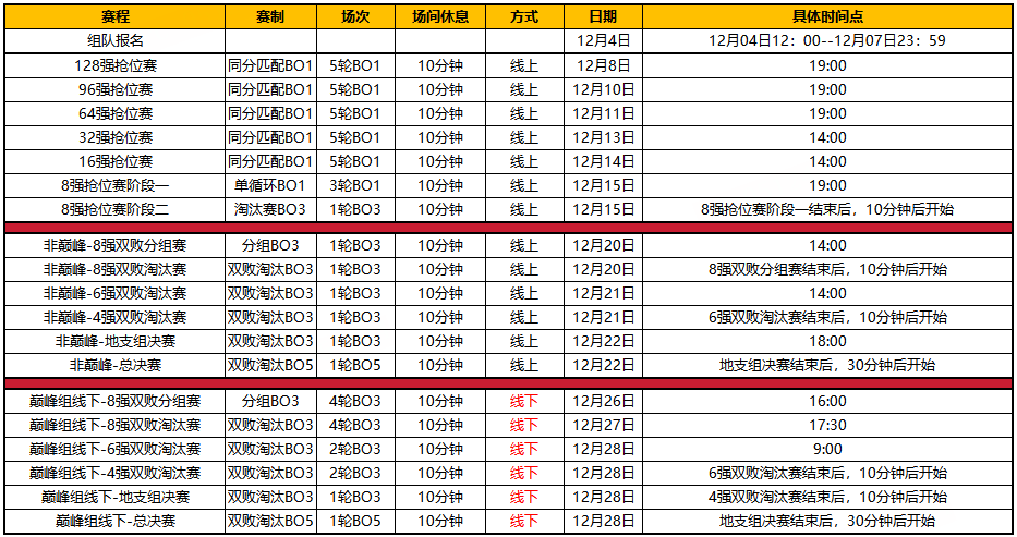 比武之巅荣耀赛赛程时间一览:
