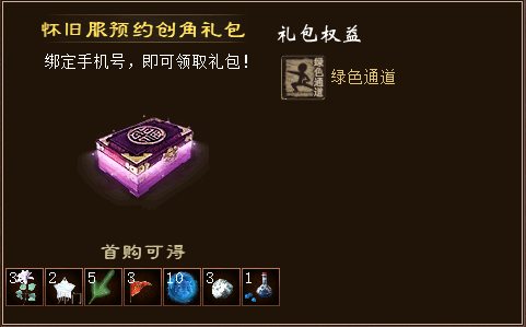 在预约期间前往游戏内创建角色,完成手机号绑定,即可享受怀旧服预约创角礼包。
