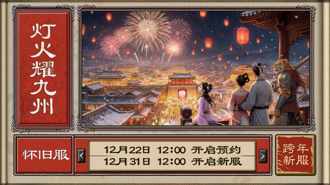《大话西游2免费版》怀旧服跨年新服『灯火耀九州』将于12月31日(周三)中午12:00开启,从12月22日(下周一)中午12:00起,各位少侠可前往游戏内(端游/口袋版均可),登录账号后选择“怀旧服”大区,选择怀旧服『灯火耀九州』创建角色,绑定手机号后即可免费领取专属礼包(内含绿色通道、血法药品、星梦原石、任我行等实用道具),助力少侠畅游大话江湖!