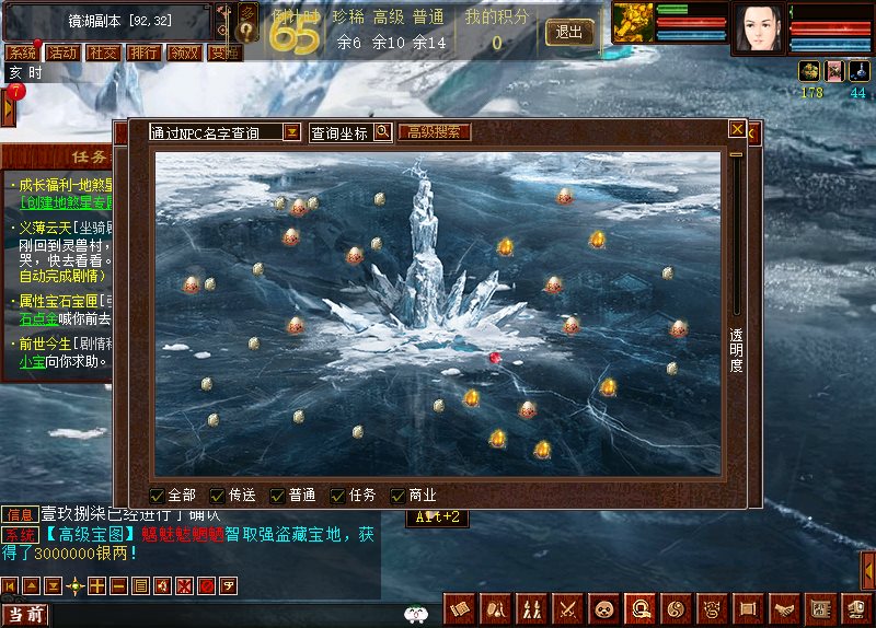 对了,元旦活动也在新区火热开启。不过对于等级低、装备差的我来说,确实有些难度,也不奢望能得到什么好东西。但有个单人玩法让我十分惊喜,奖励每次都能拿满,那就是单人挖蛋。我直接截图,按照截图的位置去挖,一边挖一边兴奋地喊着:“俺滴!俺滴!都是俺滴!”