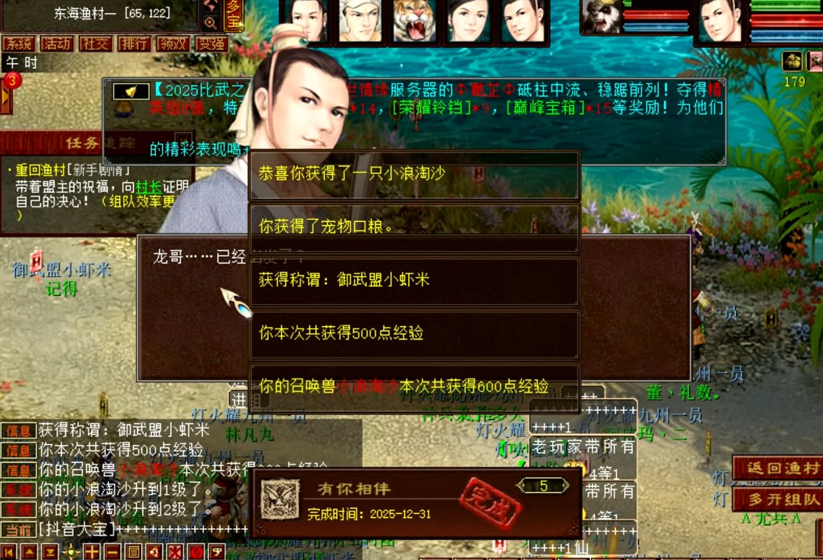 经过几十分钟的漫长等待,我总算成功进入游戏,一脚踏进东海渔村,好家伙,仿佛置身于一个热闹非凡的集市。人!全是人!多到啥程度呢?从渔村出发,经过珊瑚岛,再到海岛洞窟,到处都是身无装备、四处奔跑的逍遥生和剑侠客。