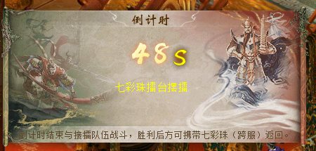战胜后可夺取七彩珠(跨服),同时自身进入被通缉状态,无法使用组队任我行,且可在安全区被攻击。须立即前往皇宫-上官仪处施展元神归位之术,5分钟后迎战接擂队伍且获胜,方可携带七彩珠(跨服)回到原服。