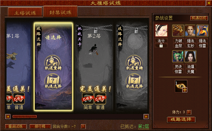 3)排行榜:优先以层数排行,其次以回合分数进行排行(简单下模式消耗回合数按照5倍计算),通过层数越高、回合分数越低的排位靠前