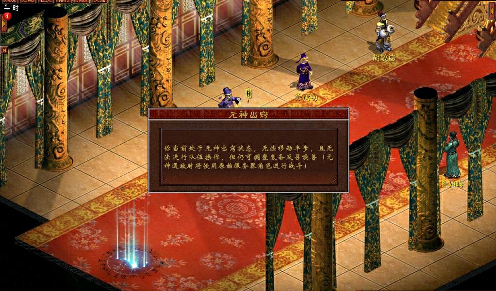 3)增加野外战斗胜利奖励:元神出窍野外战斗时,若本服玩家战胜其他服玩家的元神,则可获得对方一定的战败押金。