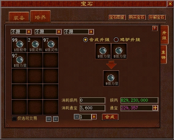 2)合成相关:九级宝石仅需两个八级宝石即可合成
